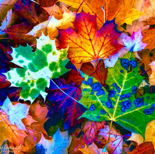 Photos of autumn leaves and colors were restyled into captivating new impressionistic abstract creations using digital photo filters and effects, and AI restyling tools.